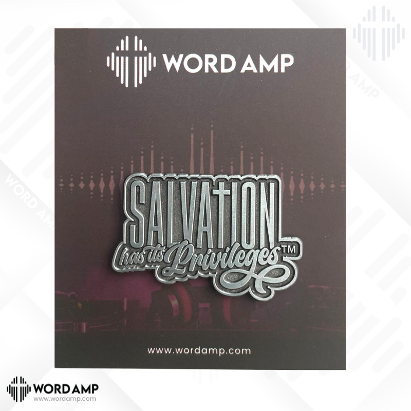 What are the privileges of salvation?! Effortlessly pique the curiosity of all you encounter with this lapel pin that makes a statement without saying a word! Our lapel pins with antique finish features our signature slogan, Salvation Has Its Privileges® and is sure to capture attention and spark conversations!