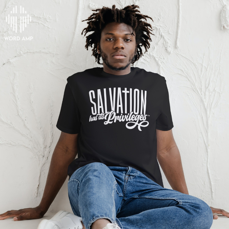 What are the privileges of salvation?! Effortlessly pique the curiosity of all you encounter with this t-shirt that makes a statement without saying a word! This t-shirt featuring our signature slogan, Salvation Has Its Privileges® is sure to capture attention and spark conversations!
